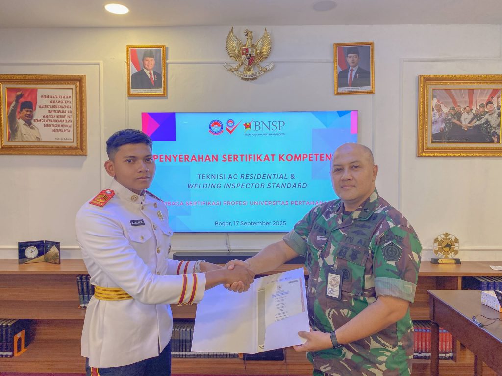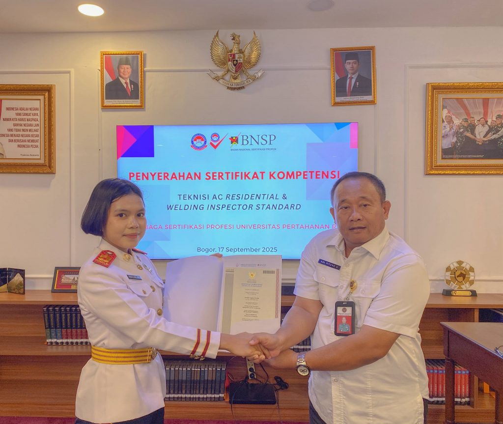 Lembaga Sertifikasi Profesi Universitas Pertahanan Republik Indonesia (LSP Unhan RI) menyelenggarakan kegiatan Penyerahan Sertifikat Kompetensi bagi mahasiswa Program Sarjana yang dinyatakan kompeten pada skema sertifikasi Teknisi AC Residential dan Welding Inspector Standard.